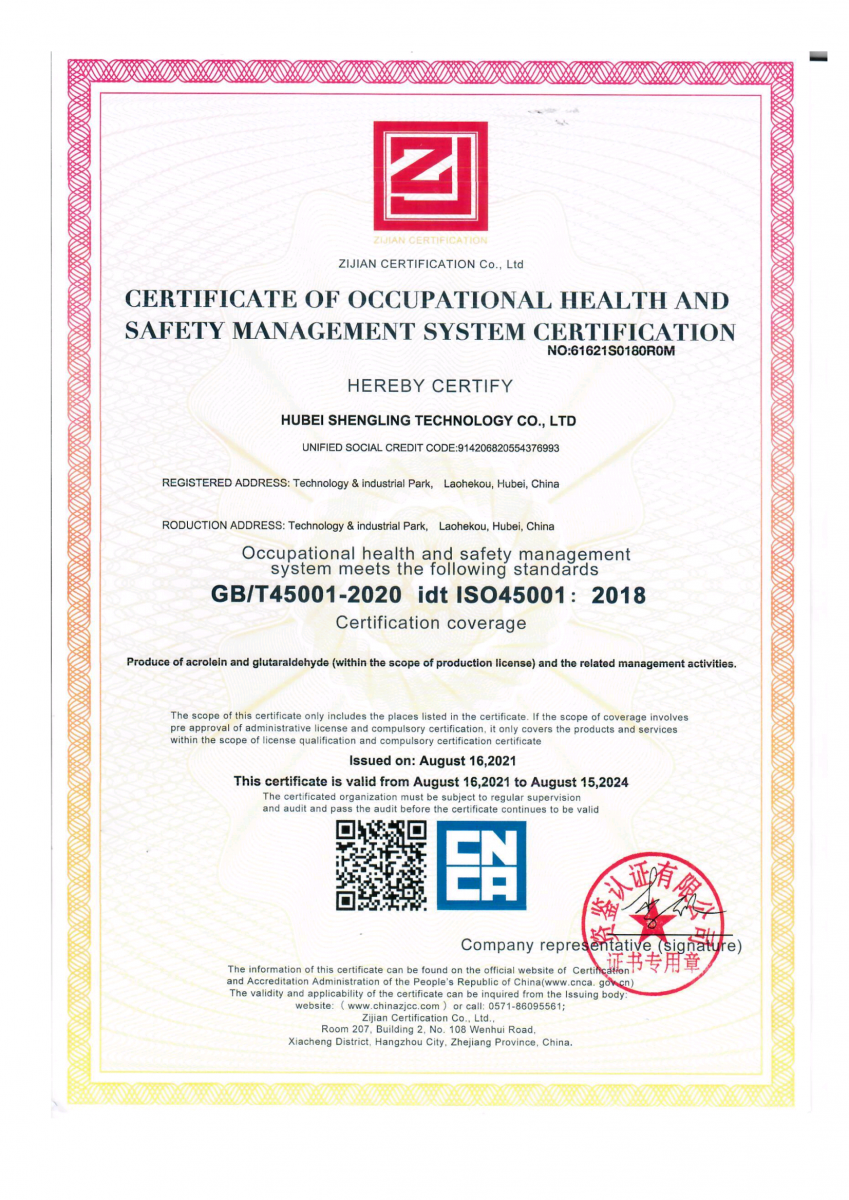 我公司以国际一流企业为目标,高标准建设,高要求生产。在公司全体同仁的共同努力下,已建成环境友好、品质优秀的花园式工厂,取得了政府颁发的安全生产许可证,废物排放证。建立起了一套质量管理、环境管理、职业健康安全,全方位的管理体系,并取得了第三方机构的认证。我公司将在环境友好、品质优秀、人员健康的前提下,持续为海内外客户提供持续、优质的服务。